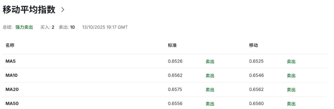 当前布林带上轨位于0.6620区域构成短线动态阻力,而中轨切入位0.6550一带则成为判断多空力量对比的关键分水岭,下轨指向的0.6470区域提供对应动态支撑。在动能指标方面,4小时相对强弱指标(RSI)从低位回升至41水平,反映市场多头动能有所修复,但整体仍处于相对弱势区间,表明空头力量仍占据主导地位。