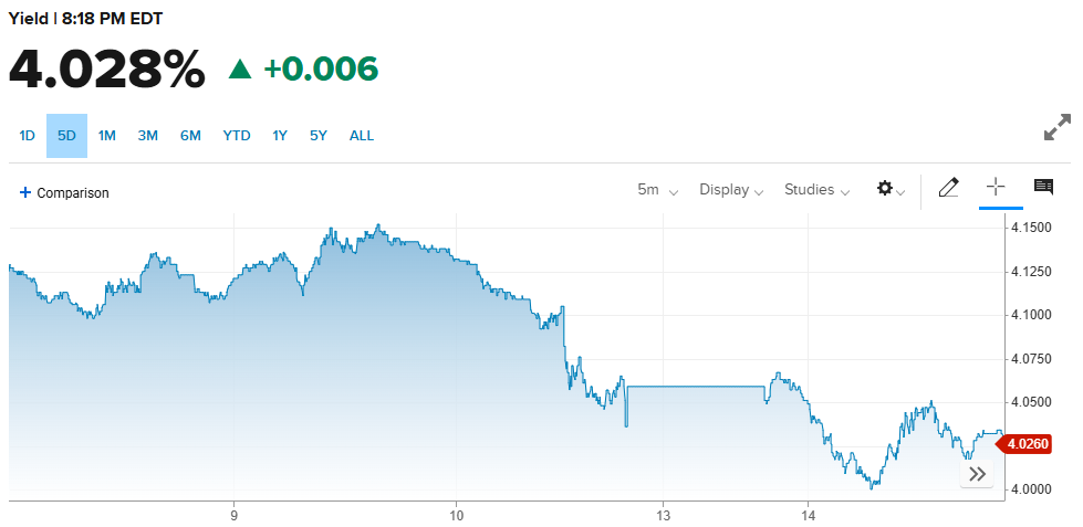 而随着10年期美债收益率盘中短暂跌穿4%关口,一些债市交易员也不免正再度心生遐想:这是否会是美债市场即将挥别“4时代”的征兆?