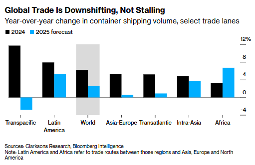 航运公司、港口运营商等物流企业首当其冲感受到这些变化。马尼拉港口运营商——国际集装箱码头服务公司(ICTSI)的执行副总裁Christian Gonzalez指出,面对美国的贸易壁垒,中国制造商正积极开拓替代市场。该公司股价今年已上涨近30%。“贸易格局的重塑对我们而言,蕴藏着巨大的积极潜力,”他谈到这一变化时表示,“全球贸易的流动不会中断。”