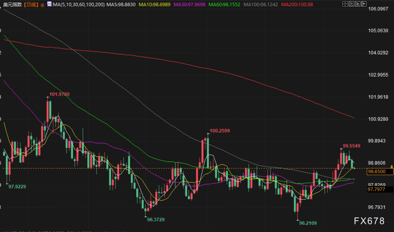 美元指数下跌0.32%,至98.72,连续第二个交易日走低。美联储褐皮书显示,美国经济活动近期几无变化,就业基本稳定,但出现裁员增多、中低收入家庭削减支出等疲软迹象。