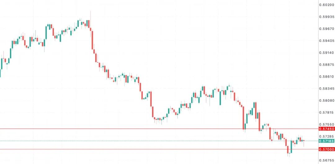 周三交易时段,纽币险守0.5700关口,并在最低触及0.5704价位水平后小幅反弹,日内最高触及0.5731价位水平。由于美联储主席杰罗姆·鲍威尔发表言论偏向宽松,推动纽币持续依托美元回落获得短线支撑。