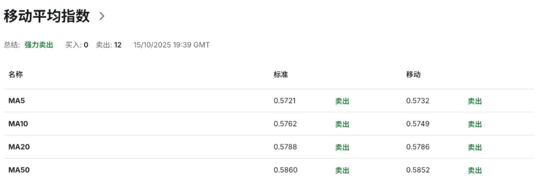 技术指标显示,日图级别上,布林带上轨当前指向0.5895附近区域构成纽币短期动态阻力,布林带中轨则位于0.5795区域,为纽币短期价格走势提供多空力量以及强弱格局核心分化枢纽。而布林带下轨向下方延伸至0.5695一线,并呈现初步拐头迹象为纽币当前价格走势提供动态支撑。布林带开口呈现初步收敛迹象,表明市场短期波动率将有所下降,汇价或进入阶段性震荡整理格局。需要注意的是,尽管当前纽币在布林带下轨获得支撑后有所反弹,但仍然远离布林带中轨所对应的均值区间,伴随14日RSI相对强弱指标下维持40以下弱势区间,并依然贴近30超卖临界点,反映当前空头动能仍占据主导优势,纽币汇价反弹动力偏弱,并为其进一步下行保留潜在技术空间。而积极信号显示,RSI指数在30超卖临界点附近区域震荡,提示短线技术性反弹条件以及“超卖—均值回归”风险正在累积,需防范空头“极端过热-平仓离场-回调”的节奏切换。MACD显示DIFF-0.0043、DEA -0.0033、MACD柱状图维持负值区间放大,双线位于零轴下方放量,显示空头动能保持强劲,若后续柱状图负值缩窄并出现零轴上方的回测,才有望触发真实技术性反弹的概率。