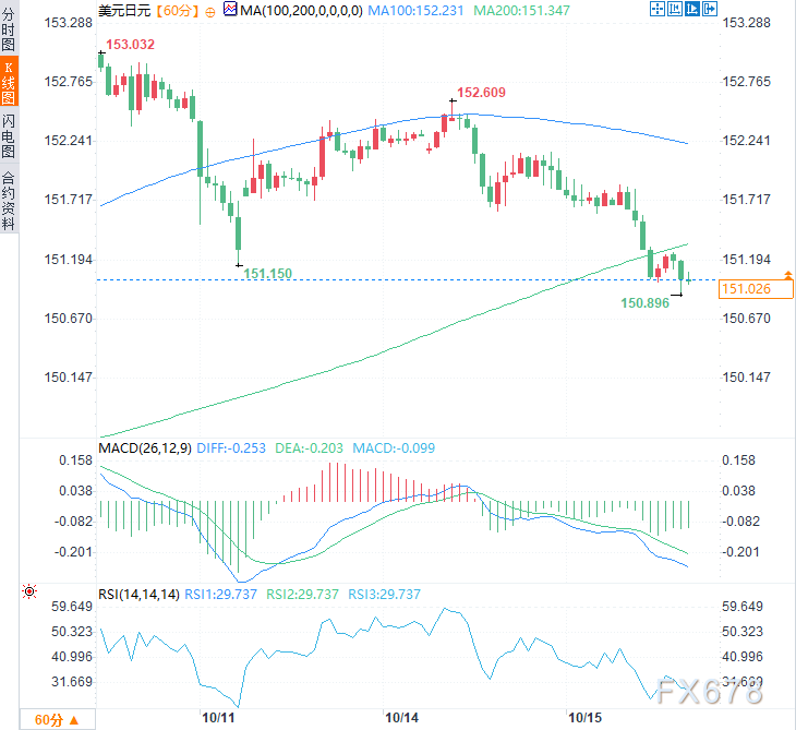 (美元兑日元小时图,来源:易汇通)北京时间15:21,美元兑日元交投于151.19/20。