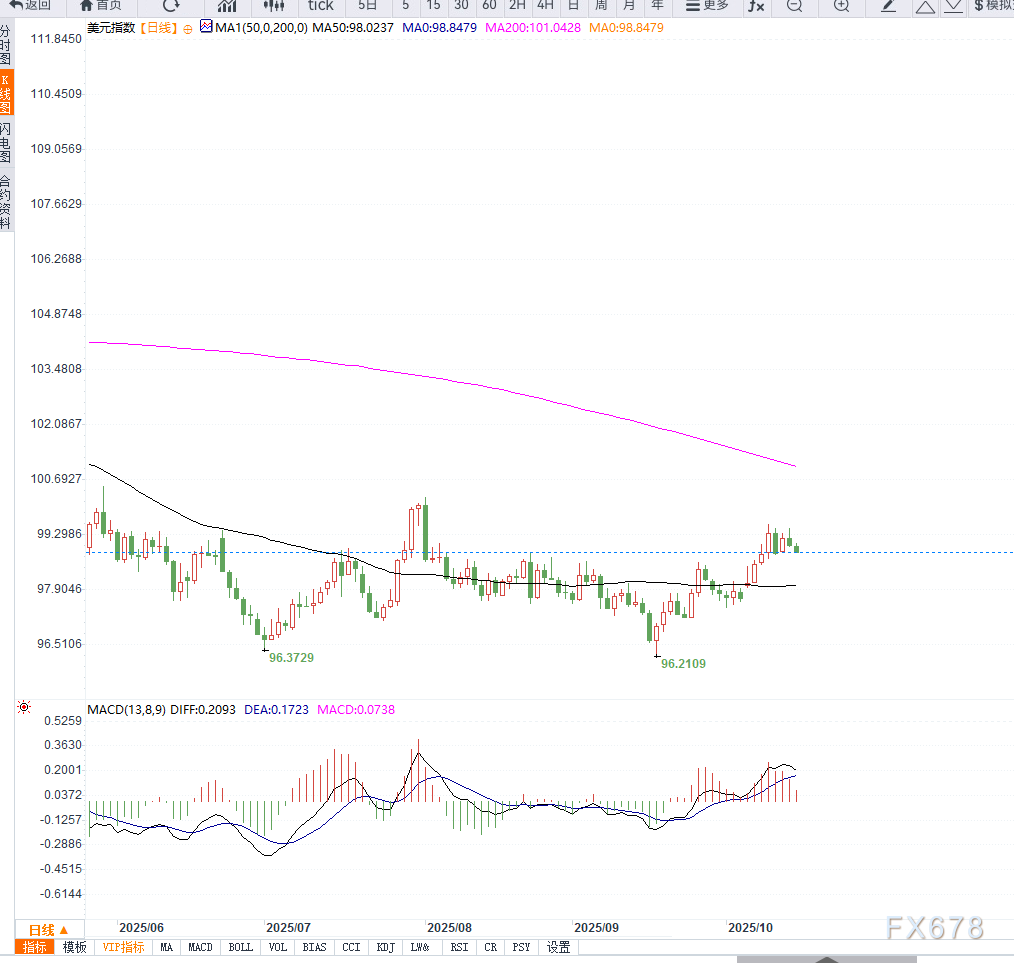 当前美元指数的下跌主要由政策预期与政治风险共同驱动。美联储的鸽派转向削弱了美元收益率优势,而政府停摆的不确定性进一步拖累投资信心。从技术面看,美元指数在99关口下方仍存在一定支撑,但若无法快速企稳,后续或进入更深回调区间。密切关注美联储官员讲话及即将公布的美国通胀数据,这将决定美元中期走势方向。