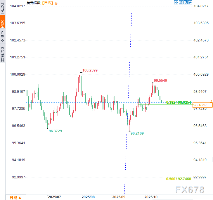(美元指数日线图,来源:易汇通)核心结论是什么?美元可能正进入新阶段。技术反弹或已终结,整体下行趋势或将延续。随着货币政策转向、相关性波动加剧及估值预警频现,美元指数的监测价值不再源于其构成机制,而在于揭示宏观趋势的指向意义。北京时间9:09,美元指数现报98.18。