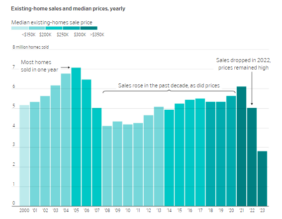 根据不少经济学家的预测,2023年美国的二手房销售量预计将降至至少2011年以来的最低水平,当时美国楼市仍在艰难地试图走出史无前例的次贷危机的阴霾。