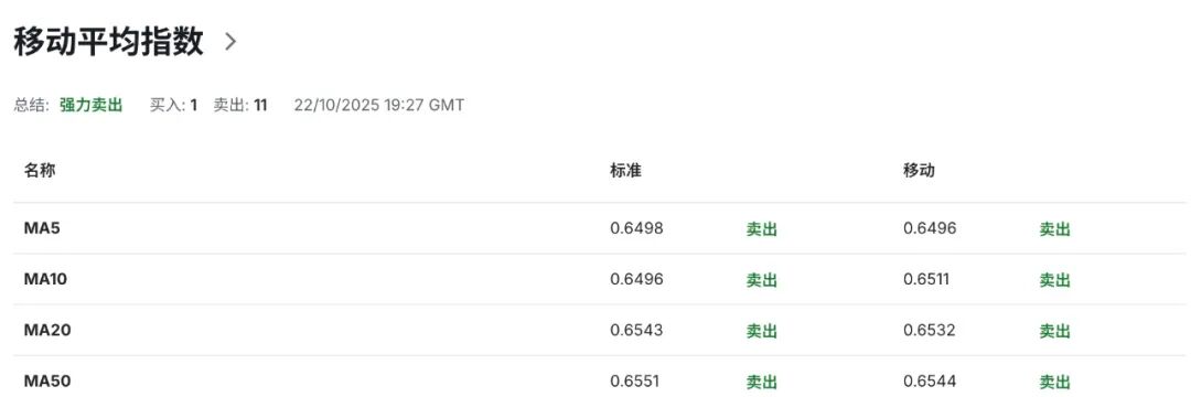 反弹路径方面,0.6540区域构成短期关键阻力带。该水平汇聚多重技术压力:既是0.6705至0.6440跌幅的38.2%回撤位,也与0.6630至0.6440跌幅的50%回撤位基本重合,同时与布林带中轨形成技术共振。唯有价格有效突破该阻力区,方可缓解当前下行压力,并为上探0.6630前期高位打开空间。