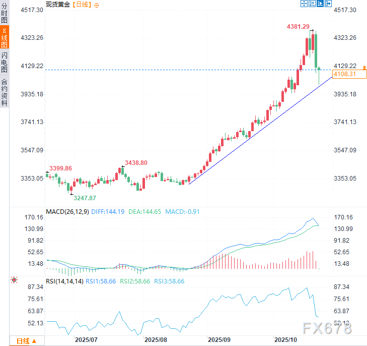 周二布斯的言论发表之际,黄金价格遭遇五年来最大单日跌幅之一,从前一交易日每盎司4381.29美元历史高点回落逾5%,至4125美元附近。她认为这并非市场对贵金属的根本性否定,而是由于全市场“争抢现金”导致的被迫抛售迹象,这一动态上一次出现在疫情爆发初期的严重市场混乱时期。