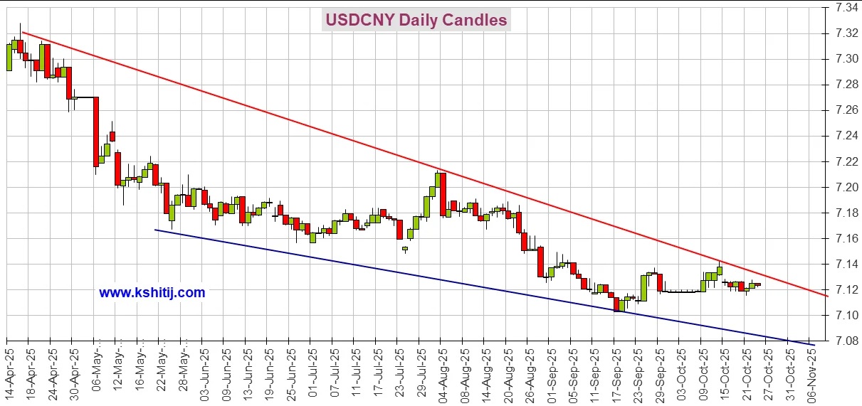一段时间以来,美元/人民币继续在7.12-7.14的狭窄区间和7.12-7.15的较宽区间内盘整。