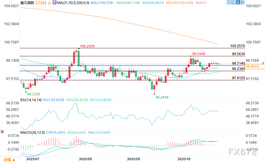 周一(10月28日),美元指数(DXY)略有走软,但仍维持在98.90附近,交易员在等待关键的宏观经济催化剂,尤其是周二开始的美联储为期两天的政策会议。