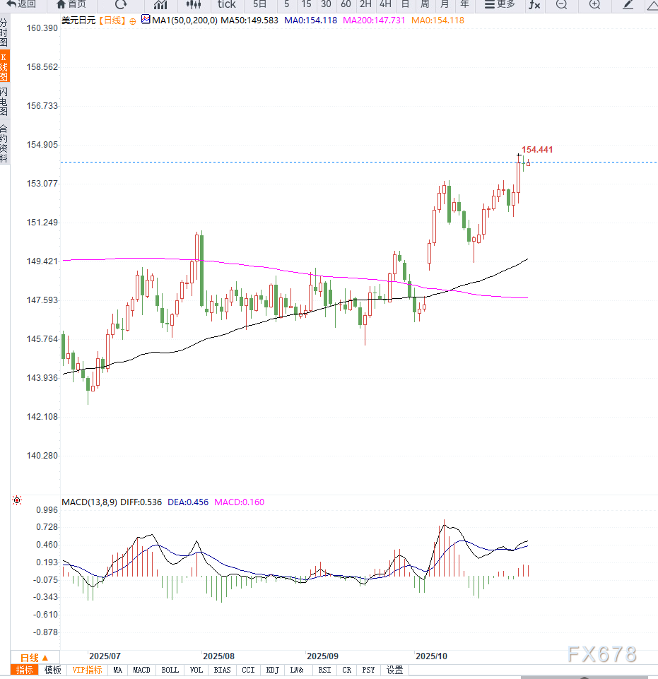 从当前政策与技术面双重结构来看,日元的弱势反映了日本经济与全球流动性周期的不对称。若日本政府继续扩大财政支出而日本央行维持鸽派立场,美元兑日元的强势格局或将在未来数周延续,除非美联储明显转向宽松或日本当局进行实质性干预。