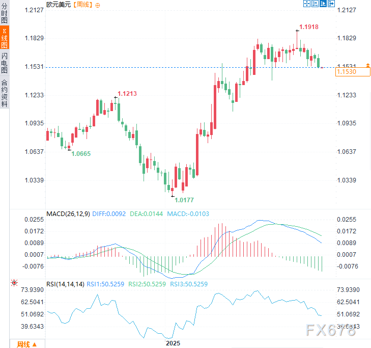 (欧元兑美元周线图,来源:易汇通)北京时间11:57,欧元兑美元交投于1.1532/33。