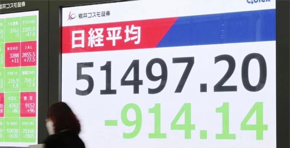 11月4日,东京股市从历史高位显著回落,结束连日涨势。日经225指数大幅下挫1.74%,收于51497.20点,失守52000点关口;东证股价指数(TOPIX)也下跌0.65%,报收于3310.14点。