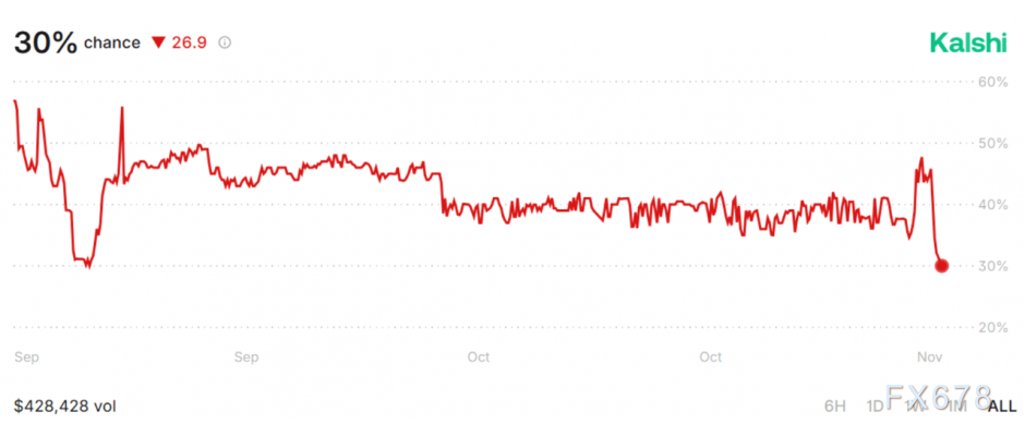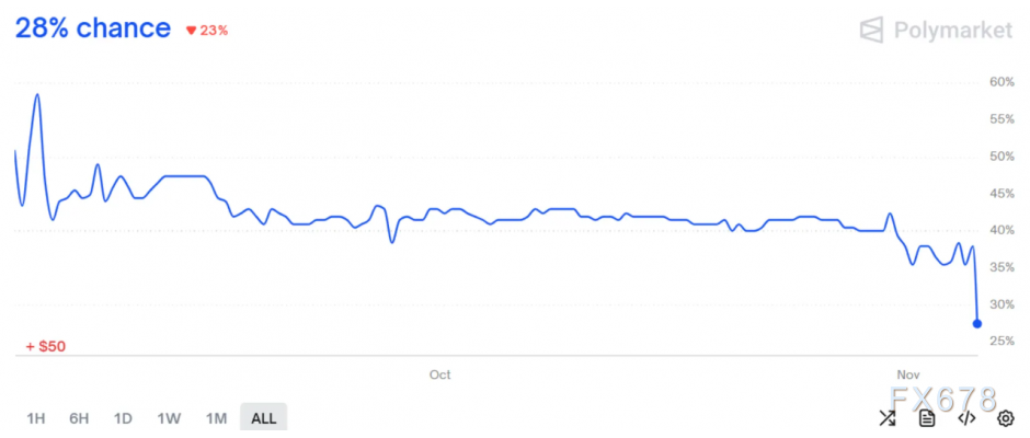 Polymarket平台上类似合约的赔率从本周早些时候的40%以上跌至30%左右,这表明交易员越来越倾向于认为法官们可能会否决该政策。