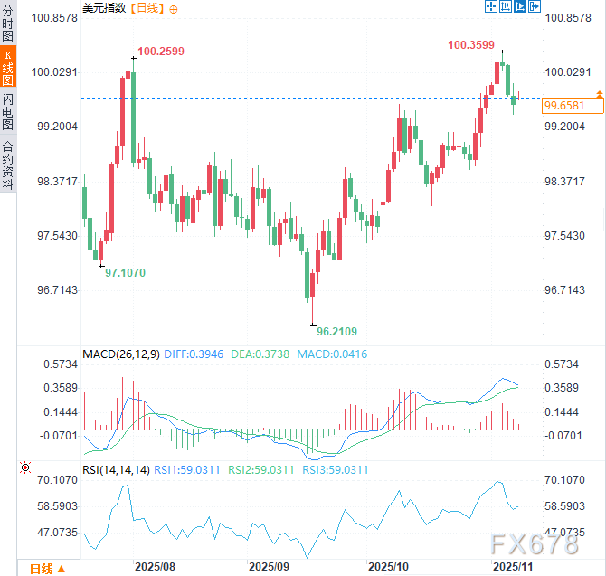 (美元指数日线图,来源:易汇通)北京时间9:24,美元指数现报99.63。