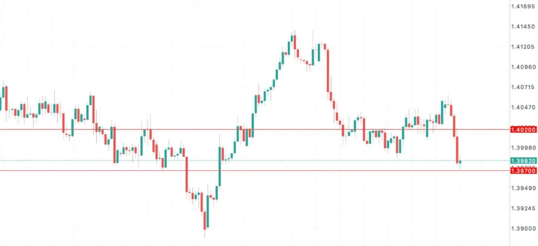 等待1.4020-1.3970价格区间的4小时收市跟进信号,采用突破交易策略。