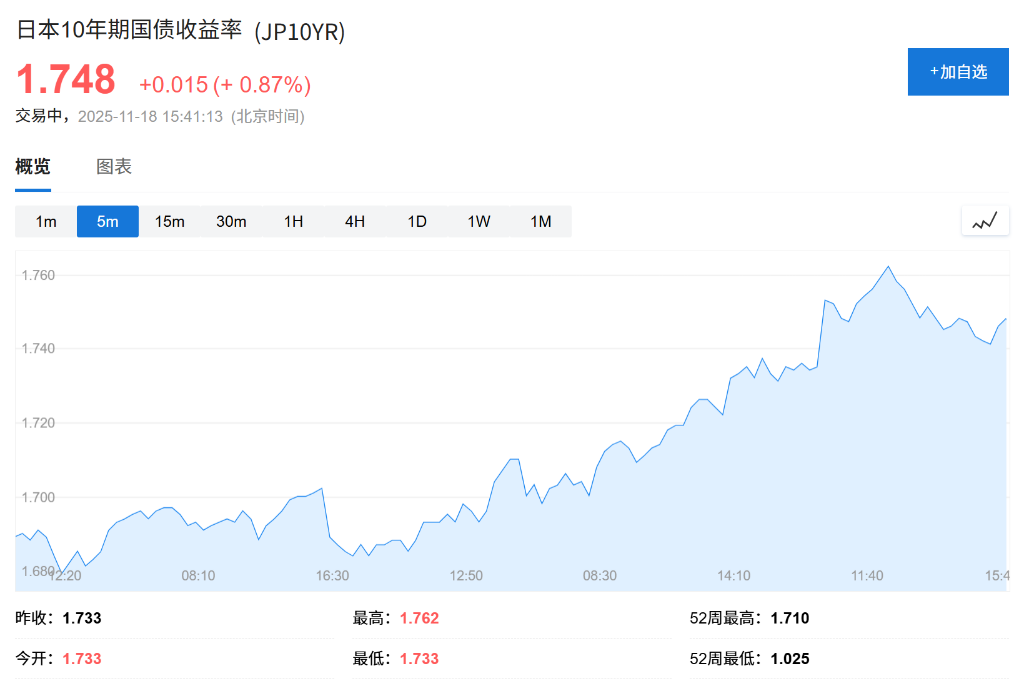 本周以来,市场避险情绪升温。日本股市与国债价格双双下跌,推动作为市场利率基准的10年期日本国债收益率攀升至17年来的最高水平。