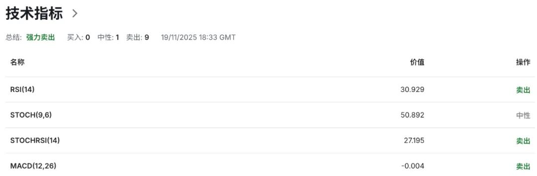 综合而言,新西兰联储调查显示第四季度新西兰的通胀预期依然低迷,巩固了新西兰联储将连续第三次降息的预期。与此同时,因新西兰联储在经济疲软背景下被迫采取激进降息措施,打击市场情绪,导致纽币周期框架结构上面临深层次压力风险。此外,新西兰第三季度失业率攀升至5.3%,创下自2016年第四季度以来的九年高点,反映就业市场增长乏力,经济疲软抑制企业用工需求。今年以来,新西兰经济持续低迷,上半年未能实现增长。尽管下半年有望温和复苏,但移民放缓与房地产市场低迷仍构成制约。零售支出和通胀预期等数据尚未明确转好,因此市场对官方现金利率的定价略有下调,进而对纽币形成压力,并导致纽币即将成为2025年首个抹去年初涨幅的主要发达市场货币。相比而言,当前投资者对美联储12月货币政策的谨慎预期,以及市场对降息节奏放缓的重新定价触发美元指数“再定价—追价—止损”的链式反应,为美元指数构成心理以及政策性支撑。美联储主席鲍威尔在10月货币政策会议后明确表示,12月是否继续降息“尚未确定”,并强调在官方数据恢复发布前,决策者将采取“观望态度”。这一表态有效抑制了市场对进一步宽松的押注,推动美元在多币种篮子中持续走强。与此同时,美联储声明显示对于美国通胀粘性与劳动力市场降温的双重风险权衡仍存分歧,从而导致决策层结构性内部分化愈发明显,阻碍美联储货币宽松政策预期的基调。根据芝商所的美联储观察工具数据显示,12月降息25个基点的概率已从上周的67%降至43%,更是较一个月前的96%大幅下滑并跌破50%半数基准线。这一转变反映了市场在评估近期私营部门数据显示的劳动力市场停滞与美联储内部鹰鸽分歧后,对降息路径的重新定价。尽管部分数据显示劳动力市场疲软,但通胀上行风险依然制约着美联储的宽松空间,引发纽币盘口整体反馈体现为:RSI指数自30以下超卖区间回调修复提示短线技术性反弹条件以及“超卖-均值回归”情绪正在积累,但尝试性上行动力扩张遭遇显著阻力压制,反弹持续性偏弱,量价关系偏向“量能前导型”下跌,即缩量反弹而放量下行的风险倾向仍维系高位水平。因此,近期纽币下行趋势延续反映防御性仓位再平衡影子再度显现,而优势仍然明显偏向于空头一侧。如若眼下0.5600区域防线未能提供有效技术性支撑,则短期技术性反弹需求将迎来负面信号,并提示需防范空头集中抛售边际效应扩张,从而导致汇价面临进一步下行测试0.5520目标区域的风险加剧。而本周整体价格走势的近端结构性阻力位于0.5700一线区域,纽币需在成功站稳至该区域上方后,才有望打破短期下行格局,并触发真实技术性反弹概率,从而激发市场多头复苏动力,为汇价通往回归10月高位平台0.5800目标区域打开新的上行空间。