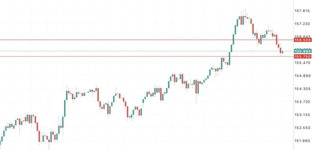 等待156.50-155.75价格区间4小时收市跟进信号,采用突破交易。