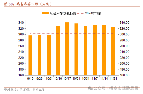 上周热卷社会库存环比下降8.91万吨至324.09万吨。