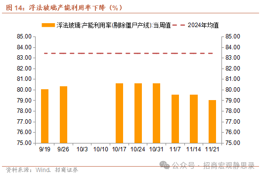 上周浮法玻璃产能利用率为79.03%,环比下降0.53个百分点,同比增速为-0.1%。