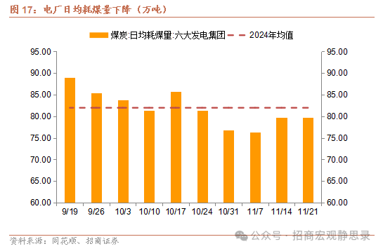 上周电厂日均耗煤量为79.72万吨,环比下降0.06万吨,同比增速为-1.5%。