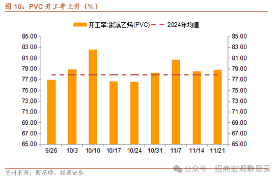 上周PVC开工率为78.83%,环比上升0.32个百分点,同比增速为-0.2%。