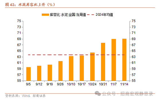 上周水泥库容比为69.11%,环比上升0.08个百分点。