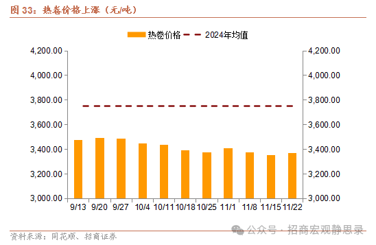 上周热卷价格指数环比上涨12.2元/吨至3369.8元/吨。
