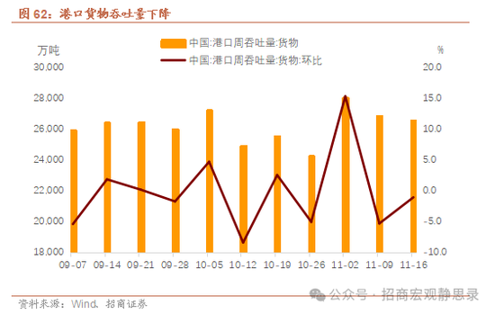 上周港口货物吞吐量26564.3万吨,环比下降1.09%。
