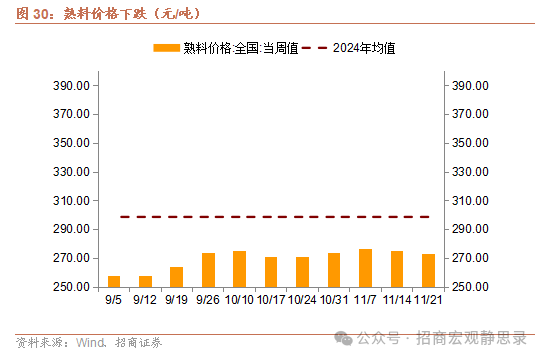 上周熟料价格为273.32元/吨,环比下跌1.61元/吨,同比增速为-22.4%。