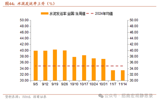 上周水泥发运率为33.44%,环比上升0.02个百分点。