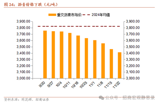上周沥青样本企业开工率为24.8%,环比下降4.2个百分点,同比增速为-20.0%。