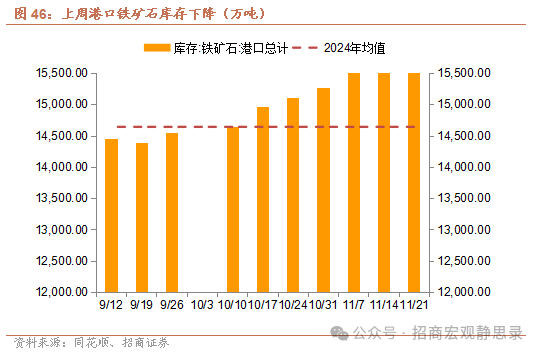 上周港口铁矿石库存环比下降77.99万吨至15734.85万吨。