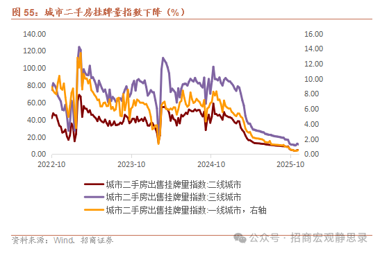 上周城市二手房挂牌量指数为5.81,环比下降12.1%。其中,一线城市环比下降15.38%,二线城市环比下降15.06%,三线城市环比下降8.2%。