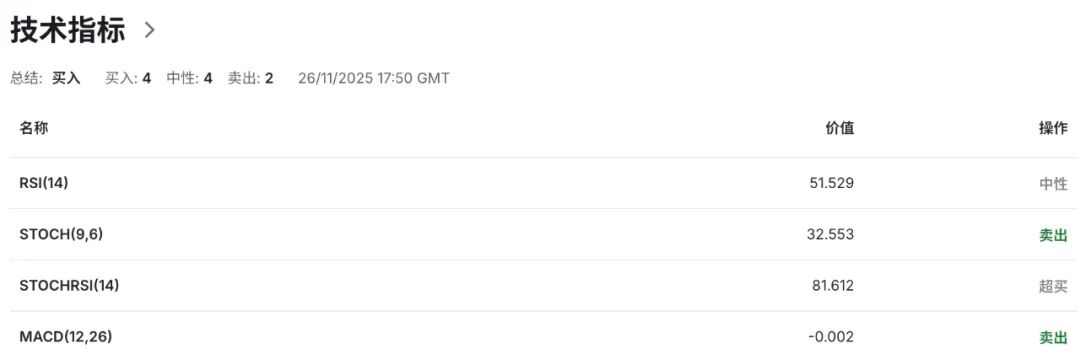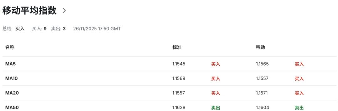 据芝加哥交易所CME“美联储观察”显示,美联储12月降息25个基点的概率由上周的40%低点回升至84.7%,维持利率不变的概率为15.3%;美联储到明年1月累计降息25个基点的概率为64.7%,维持利率不变的概率为10.9%,累计降息50个基点的概率为24.4%。美联储与市场“再定价”的共识转变再度强化12月降息预期节奏,从而削弱美元指数近期的强势表现,为欧元提供政策面支撑,驱动汇价自日内1.1546低点水平进一步反弹并触及1.1600关口。