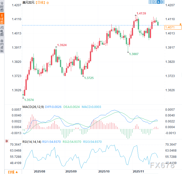 (美元兑加元日线图,来源:易汇通)北京时间14:51,美元兑加元交投于1.4069/70。