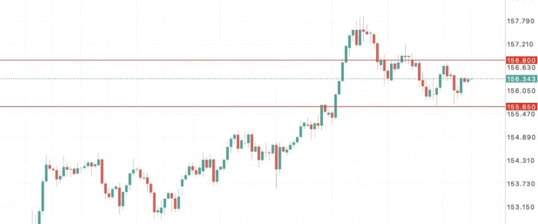 等待156.80-155.65价格区间4小时收市跟进信号,采用突破交易。