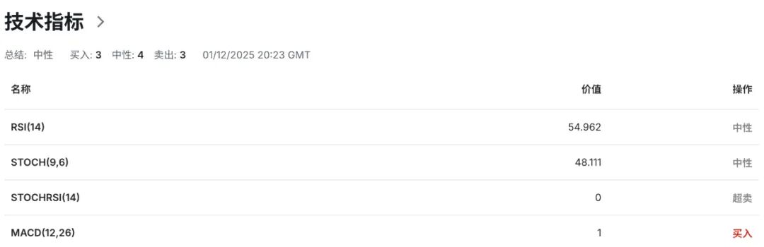 技术指标显示,日线级别布林带上轨切入点指向157. 75区域水平为汇价提供短期动态阻力,布林带中轨运行线指向的155.20区域水平为走势提供潜在强弱分化,布林带下轨切入点指向的152.75区域水平为汇价提供短期动态支撑。当前汇价回落至布林带中轨区域运行,呈现多头动能的显著放缓迹象。布林带开口未呈现明显扩张迹象,表明短期波动率保持相对平稳。与此同时,14日RSI相对强弱指标降至52.70附近中性区域,表明当前多空力量维持相对均衡状态,汇价面临阶段性方向选择。