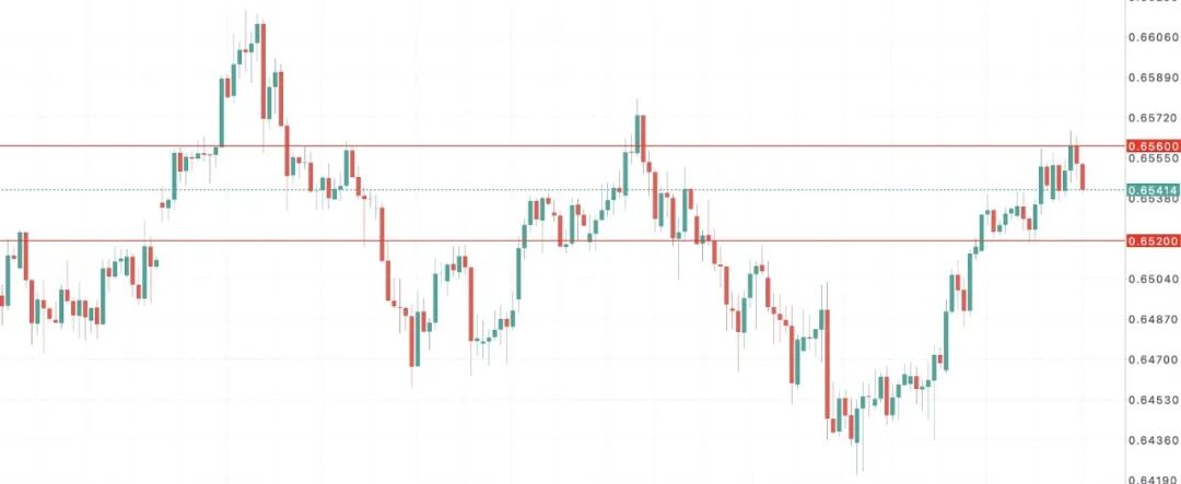 从4小时图技术结构看,自0.6420低点启动的本轮上升趋势目前保持完整。值得重点关注的是,汇价于昨日测试0.6560附近的关键共振阻力区——该水平不仅是0.6705至0.6420下跌波段的50%斐波那契回撤位,同时也与布林带上轨重合,形成技术压力。若能有效突破并站稳于0.6560上方,则上升空间将进一步打开,后续目标可看向0.6600及以上水平;反之,若汇价在此受阻回落,则需关注0.6520区域的初步支撑。若进一步失守该位置,则下行目标可能延伸至0.6490乃至更低水平。