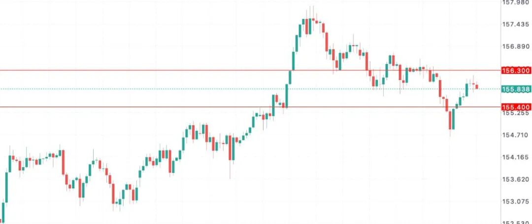 等待156.30-155.40价格区间4小时收市跟进信号,采用突破交易。