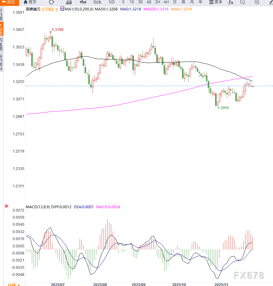 与此同时,美元在全球范围内出现阶段性反弹,使英镑兑美元上方压力更为明显。此前英国秋季预算案(Autumn Budget)曾为市场带来短期提振,但随着政策影响逐渐淡化,投资者重新将焦点转向利率前景。