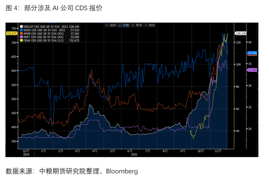 这意味着巨头研发与运营,将对整体环境构成更权重的影响,这与七姐妹对美国股市的定价相互印证。但9月以来,市场对于巨额资本开支,能否转化为未来盈利爆发开始产生怀疑。根据惯性做多股价同时,利用CDS进行保险对冲的需求日益增强。