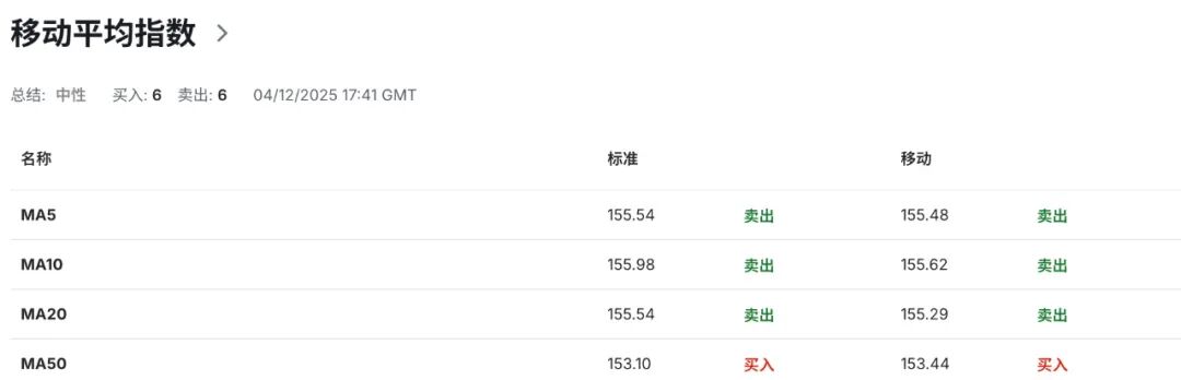 技术指标显示,日线级别布林带上轨切入点指向157.65区域水平为汇价提供短期动态阻力,布林带中轨运行线指向的155.50区域水平为走势提供潜在强弱分化,布林带下轨切入点指向的153.40区域水平为汇价提供短期动态支撑。当前汇价回落至布林带中轨下方运行,显示空头动能占据相对优势。布林带开口呈现收缩迹象,表明短期波动率有所下降。与此同时,14日RSI相对强弱指标降至50.50附近中性区域,表明当前多空力量维持相对平衡状态,汇价或面临阶段性方向选择。