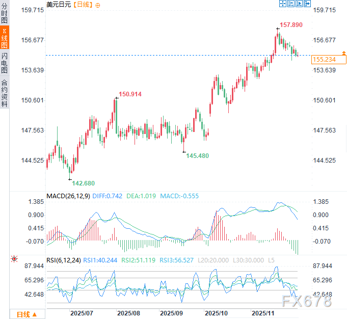 (美元兑日元日线图,来源:易汇通)北京时间14:15,美元兑日元交投于155.39/40。