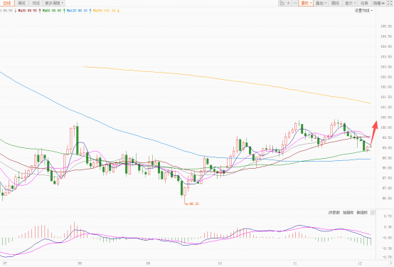 欧元兑美元价格从前期1.0177的新低开始筑底反弹,一路震荡上涨,目前欧元对美元整体全部运行在MA250日均线上方,呈明显的多头趋势。日内短线行情则建议看多震荡上涨的走势。