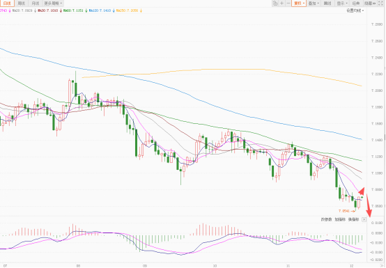美元对人民币的离岸价在4月8日创出7.4287的新高后,出现明显承压回落走势,目前美元兑人民币价格跌破并运行在MA250均线下方,日内短线行情则建议看空震荡回落的走势。