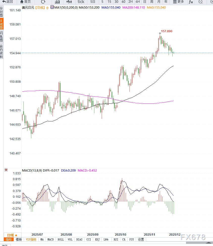 若跌破154.50一带的前低,报价可能进一步加速下探至154.00整数关口。反之,若汇价重新站上155.40并获得稳固支撑,将可能启动短线空头回补行情,向156关口与156.60压力带推进,最终挑战157整数位。
