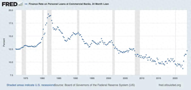 与此同时,美联储的数据显示,8月份商业银行24个月期个人贷款利率达到12%,为2007年以来的最高借贷成本。