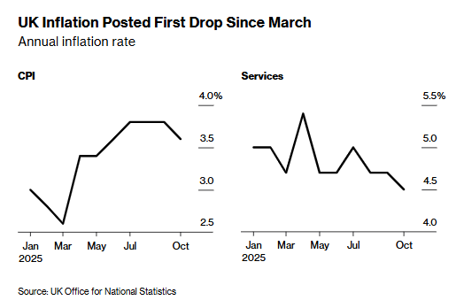 货币政策委员会的分歧核心,在于如何权衡英国居高不下的通胀水平与持续走弱的就业市场。截至10月,英国通胀率仍高达3.6%。自2024年8月开启本轮宽松周期以来,这两股相互博弈的力量已让降息决策的推进步履维艰,而随着政策利率向中性水平逼近,未来的降息操作将更具挑战性。